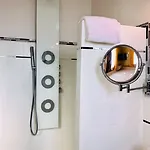Certaines chambres d'Hotel Le Pre Catelan sont équipées d'un chauffage central et d'un équipement de repassage, ainsi que d'options indépendantes telles qu'une bouilloire électrique. Les pièces sont équipées d'une toilette séparée et une douche, en outre un sèche-cheveux et des serviettes sont aussi fournis. Certaines de ces chambres offrent une vue sur la ville.